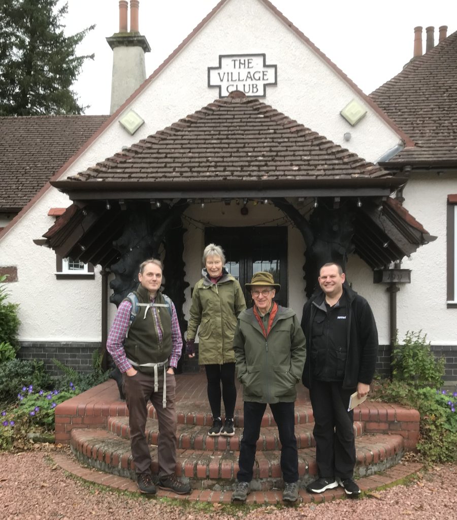 On Friday 17 October 2025, Strathblane Heritage committee members, Keith Vass and Anne and Alastair Balfour, plus drone photographer Jamie Ballantine met with Kenny French of Kenwil Ltd, the Kirkintilloch-based company awarded the contract to produce the boards for our Strathblane Heritage Trail.